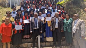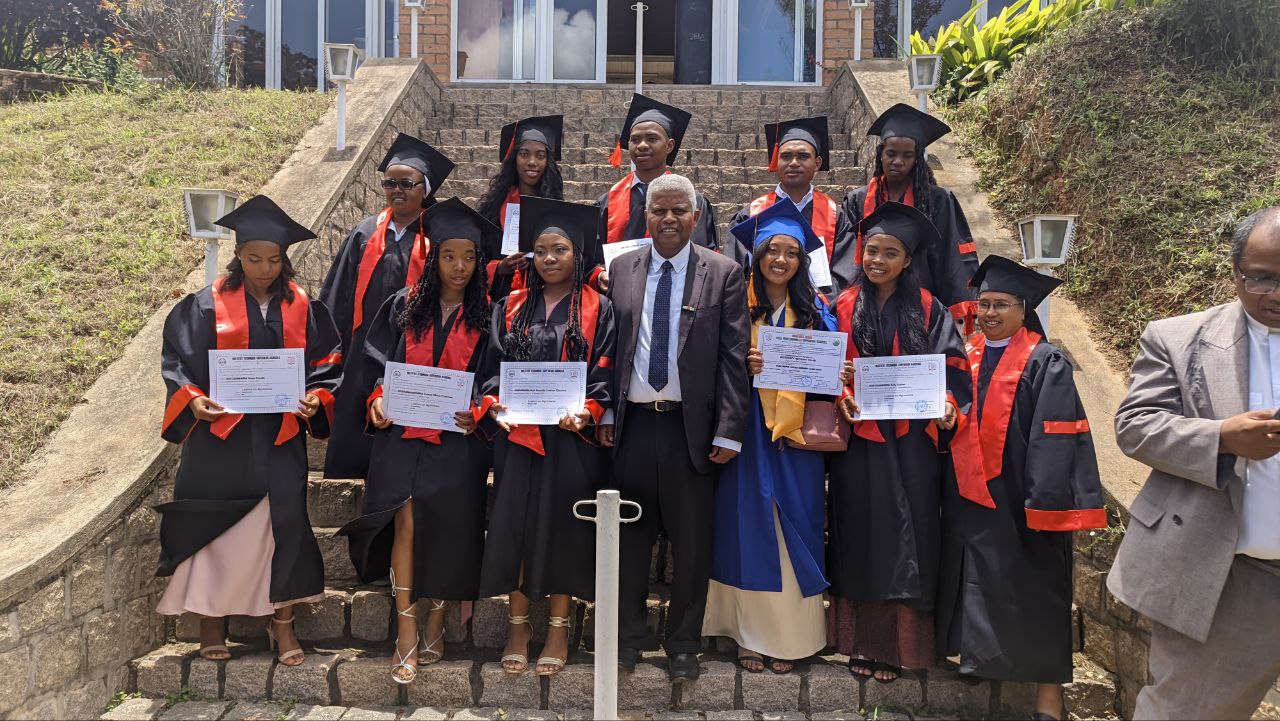 Les diplômés, issus des filières Agronomie et Génie mécanique du campus de Fianarantsoa, ont reçu la bénédiction de leur parrain, du Président de l’U-Magis Madagascar, du Directeur de l’U-Magis Antady Fianarantsoa, ainsi que des nouveaux Directeurs adjoints de l’ITSA et de l’ITSFX.