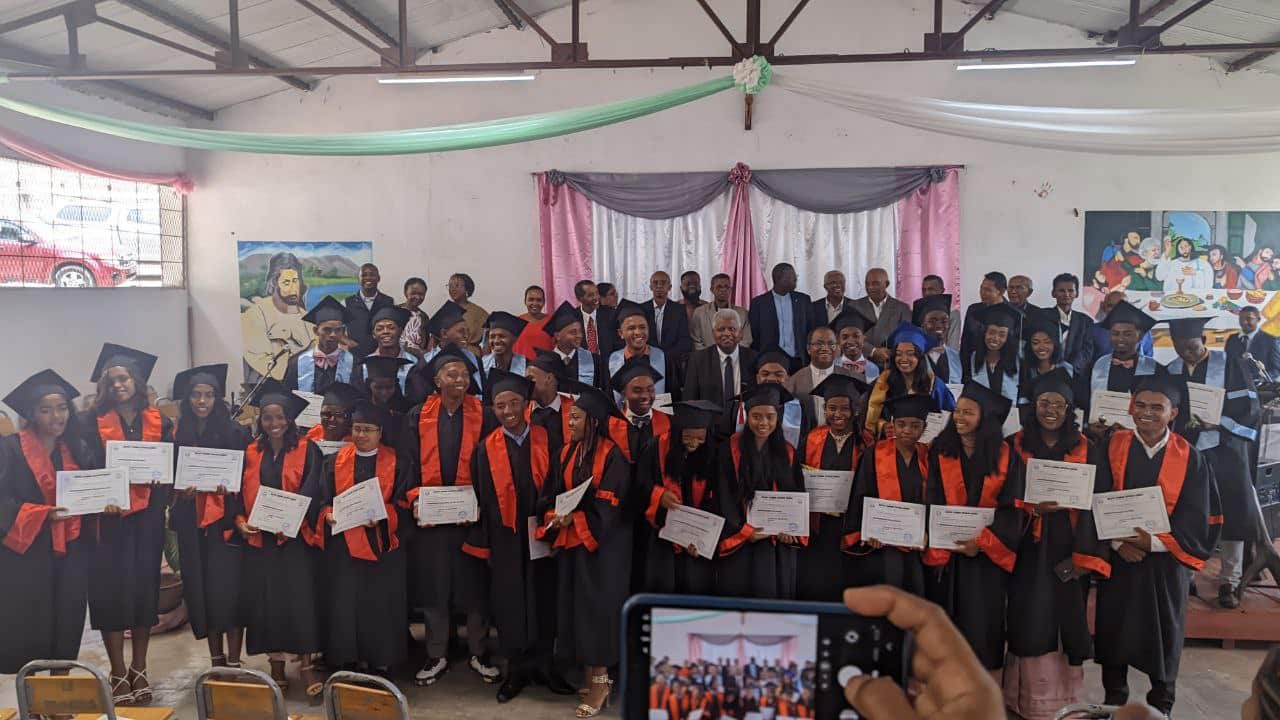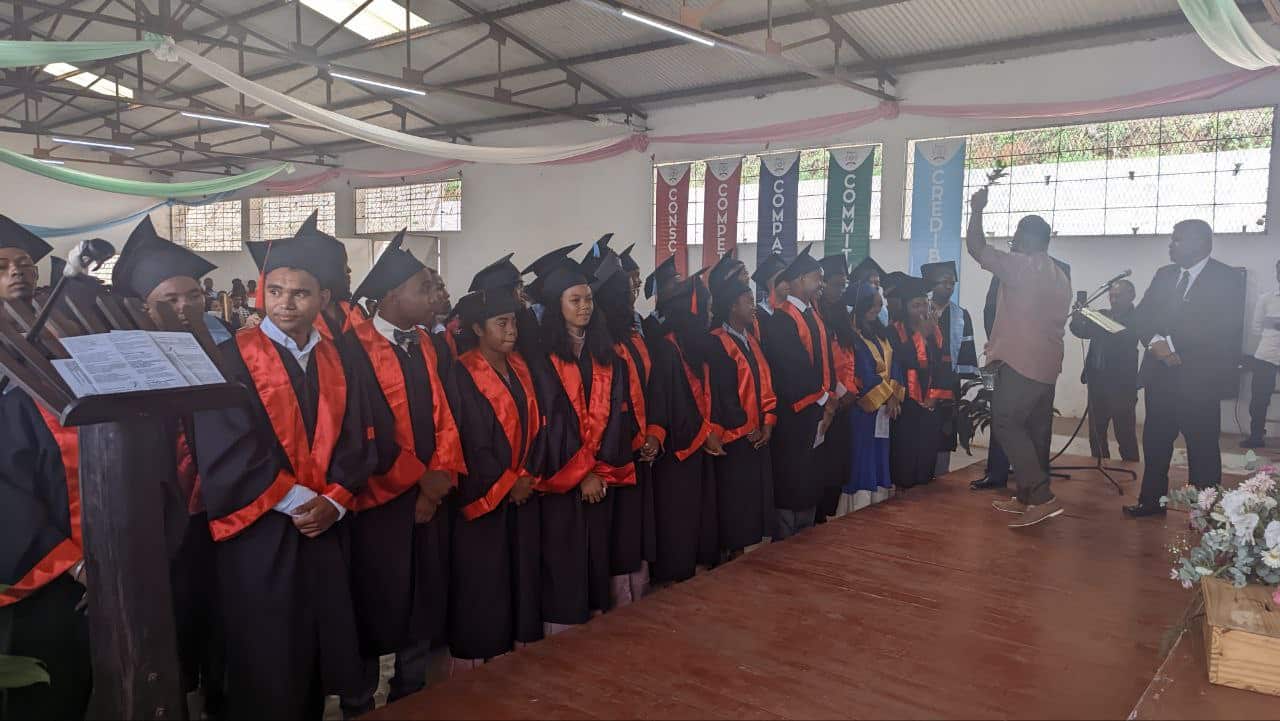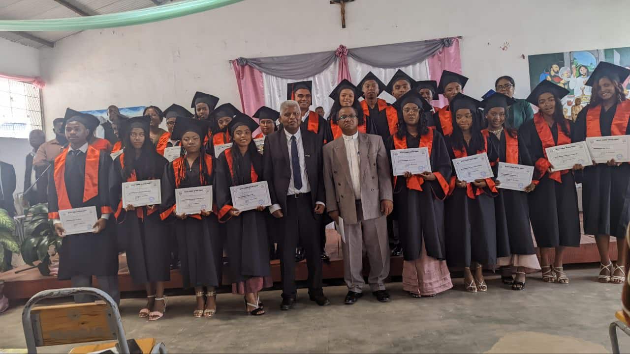 La célébration eucharistique a été présidée par le Père RAKOTOARISON Hilarion, sj, Président de l’U-Magis Madagascar, assisté de prêtres invités, membres de la Compagnie de Jésus et représentants de l’éducation catholique à Fianarantsoa. Cette messe a consacré officiellement la sortie de la promotion MIRAY, dans un esprit de foi, de gratitude et d’engagement.