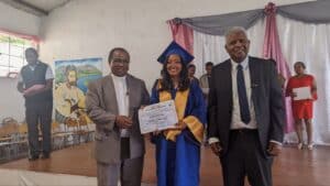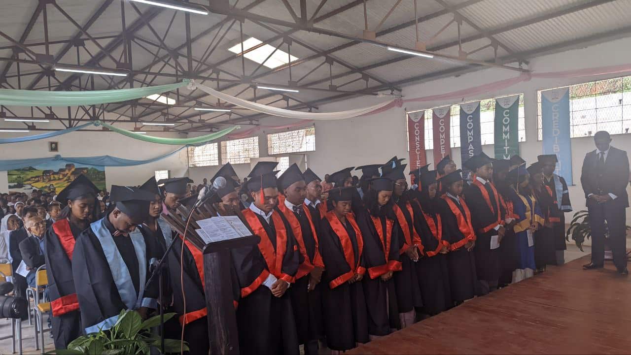 Un représentant de l’État, Monsieur Jean RAKOTOSON, Directeur de cabinet de la Région Haute Matsiatra, a salué la contribution historique de l’éducation catholique à Madagascar, soulignant les efforts consentis pour atteindre son niveau d’excellence et de reconnaissance actuels. Il a adressé ses vœux de réussite à la promotion MIRAY, les exhortant à devenir des acteurs du changement au service du développement national.