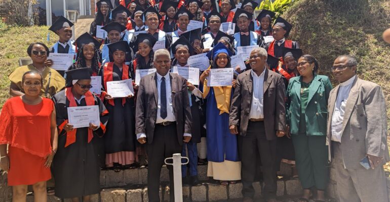 Prenant la parole, le nouveau Directeur adjoint de l’ITSA, Monsieur KAKALA Hasina, doctorant, a retracé l’évolution historique de l’U-Magis et de l’enseignement catholique jusqu’à ce jour, mettant en perspective la sortie de la promotion MIRAY dans la continuité de cette mission éducative.