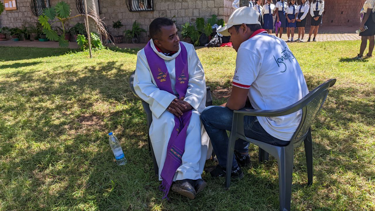 Cet événement s’est conclu par une messe solennelle, présidée par le Père RAKOTOARISON Hilarion, SJ, prêtre président de U‑MAGIS Madagascar. Au cours de l’homélie, le prêtre Jacques MANANTO a partagé un sermon inspirant sur des thèmes essentiels à la vie chrétienne : l’abnégation, l’humilité et la nécessité de se détacher des distractions superficielles de ce monde pour mieux écouter la voix de Dieu. Le sermon a évoqué les difficultés et les épreuves modernes, comparant le bruit, la lumière et l’obscurité à un confinement qui nous éloigne de l’essentiel. Il a parlé de la violence silencieuse de la superficialité et du manque d’écoute, mais aussi de la force de la foi qui, même dans l’adversité, peut conduire à la réconciliation intérieure et à la paix spirituelle. Il a rappelé aux pèlerins l’importance de croire et d’accepter sans hésitation les chemins que Dieu nous offre. Le pèlerinage a été une occasion pour les étudiants de réfléchir sur leur vie spirituelle et de se reconnecter avec leur foi. Les paroles de saint Joseph, “Dieu parle, j’écoute”, ont résonné tout au long de cette journée, rappelant à chacun l’importance de croire et d’accepter sans hésitation.