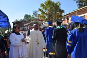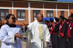 Le Père Provincial a également pris la parole, rappelant que Dieu est le premier éducateur et que chaque étudiant a un rôle crucial à jouer dans la construction d’un avenir meilleur. Il a encouragé les diplômés à ne pas se laisser abattre par les échecs, mais à les considérer comme des étapes vers l’excellence. En évoquant le principe « Voir-Juger-Agir» , il a encouragé les étudiants à être conscients de leur environnement et à assumer leurs responsabilités. Son message était clair : pour être véritablement « TSARADIA », il faut s’engager à connaître et à réaliser le bien, tant pour soi que pour la communauté.