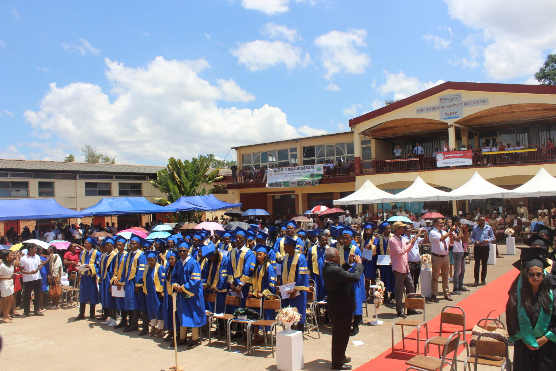 Après de nombreuses années de dévouement et de dévotion envers les études, les efforts ont finalement abouti à des résultats. Le 15 décembre 2023, à Bevalala, la promotion IRAY de U-Magis Madagascar a reçu son diplôme. La cérémonie a servi à deux fins car elle marque également la fin de la célébration du 30e anniversaire de l’EPSA. 259 étudiants ont reçu leurs diplômes, dont un diplôme de licence et un diplôme de master. Parmi les sept écoles de l’U-Magis Madagascar, seules quatre ont pu remettre les diplômes à leurs étudiants lors de cette cérémonie de remise de diplômes : Samis-Esic et ETS pour le campus Amparibe, EPSA et ESBTP pour le campus Bevalala. 41 étudiants diplômés pour la licence en technicien supérieur de l’ESBTP et 13 ingénieurs pour le diplôme de master. 48 ingénieurs agronomes et 85 techniciens supérieurs pour EPSA. Les étudiants diplômés de licence de la SAMIS-ESIC sont 66 et 2 en maîtrise en sciences de l’information et de la communication. La plus ancienne école de l’U-Magis à Madagascar compte 22 étudiants, dont 10 en génie mécanique et 12 en électromécanique, ainsi qu’un ingénieur en automatisme industriel et électromécanique. La sortie de promotion pour le campus Antady est prévue pour le 6 janvier 2024, tandis que pour le campus Tsaramasoandro, elle sera organisée en juillet 2024.